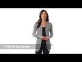 This soft, cozy cardigan sweater has a flattering drape and features fully-fashioned sleeves for strength and enduring wear. Stylish longer rib knit height details at cuffs and hem.|